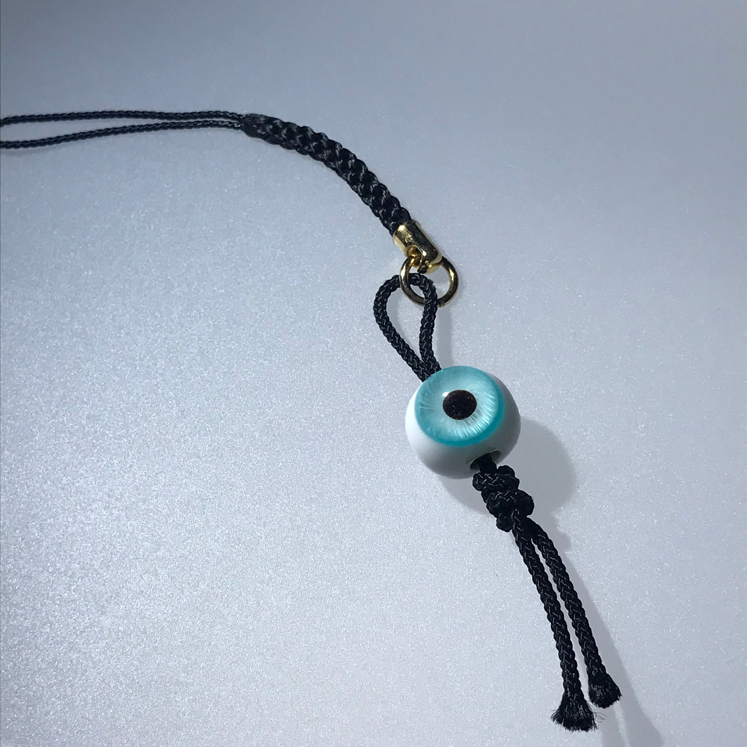 虹彩が青色の目玉の根付です。