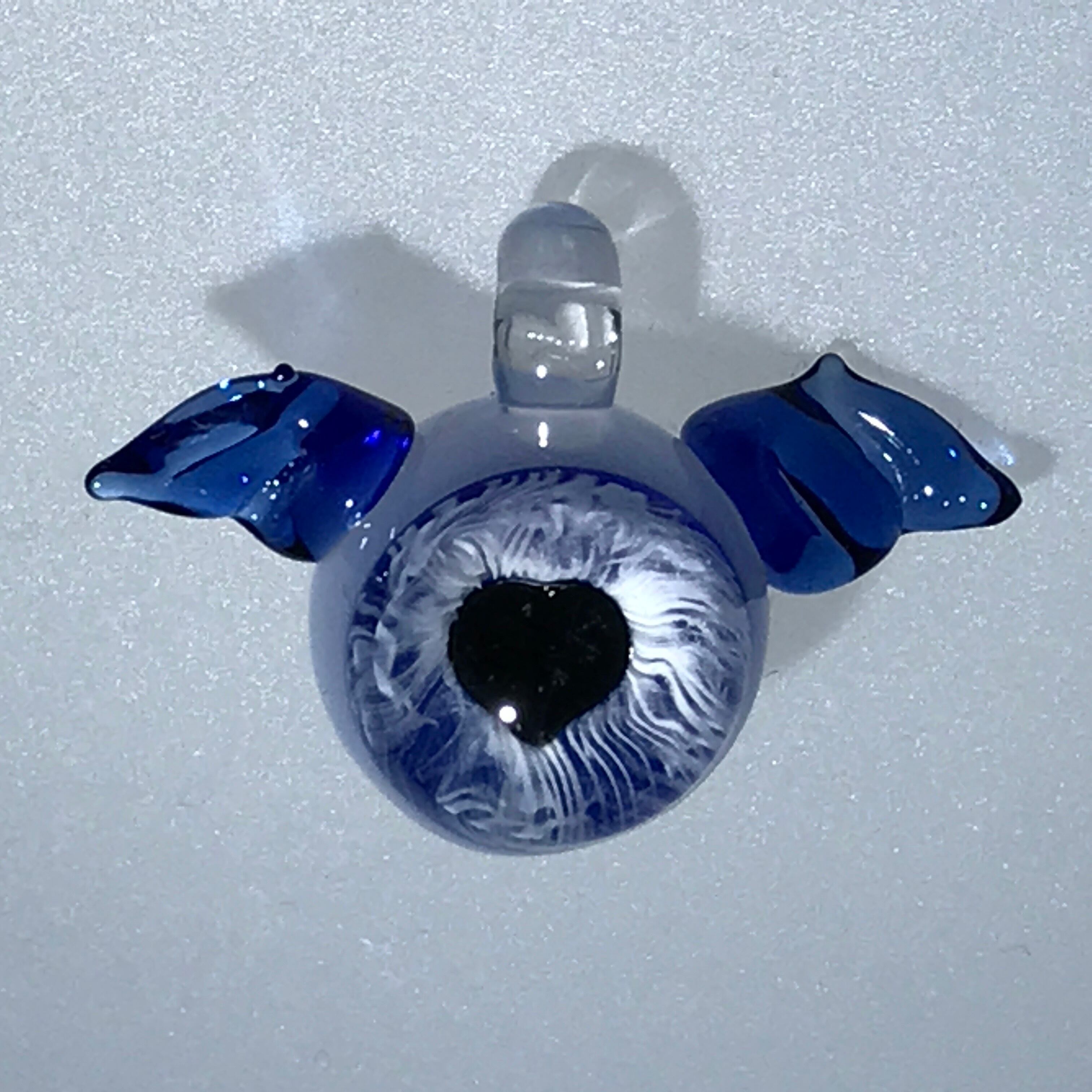 目の中にハートのある羽根が生えた目玉のペンダントTOPです。
